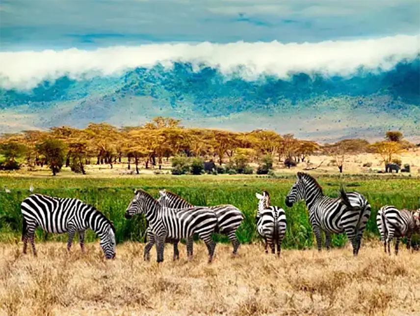 After breakfast, enjoy one last game drive in the Serengeti before heading to the Ngorongoro Conservation Area. Descend into the breathtaking Ngorongoro Crater, a haven for wildlife and one of Africa’s Seven Natural Wonders. Here, you’ll find the highest concentration of animals on the continent, including the endangered black rhino. Spend the afternoon on a game drive, surrounded by the crater’s striking scenery. Later, head to your lodge on the crater rim for a relaxing evening.
