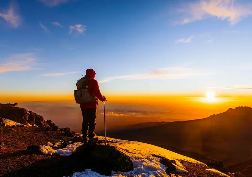 Your trek today will be a more challenging ascent from Horombo Hut to Kibo Hut (4,700m). Leaving behind the moorland, you’ll enter the alpine desert zone, a stark yet captivating landscape dotted with rocks and volcanic features. This section of the trek is quieter, with few plants or animals, but the silence and solitude make it a meditative experience. The summit is now in sight, providing inspiration for the final push ahead. After a steady 6-8 hour hike, you’ll arrive at Kibo Hut, where you’ll have an early dinner before turning in early. Tomorrow’s summit push begins at midnight, so rest is essential.